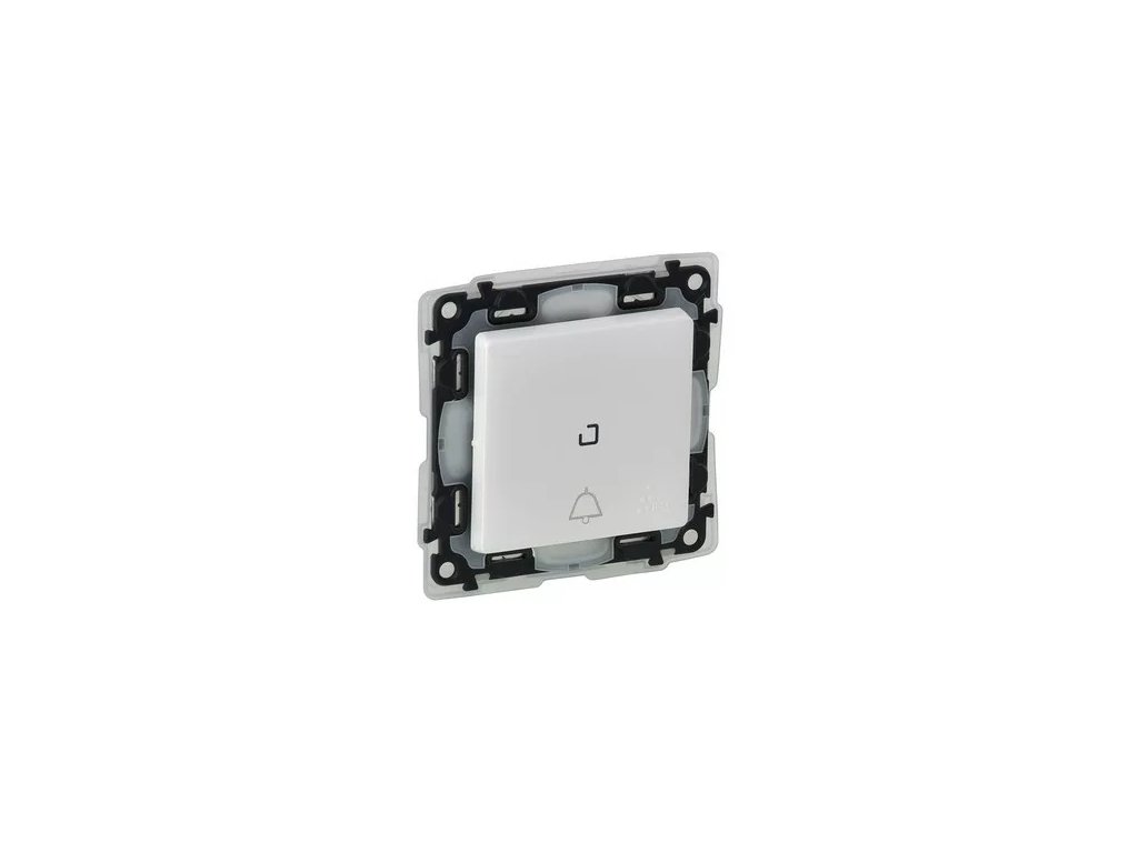 Tlačidlo s prepínacím kontaktom s orientačným osvetlením, symbol zvončeka, bezrámika, farba biela, IP44.Dodatočné parametre