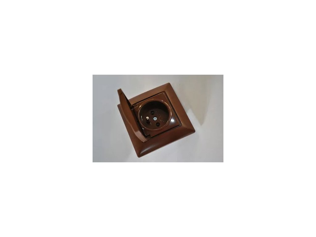Zásuvka 2P s krytom s dizajnom dreva - orech, IP20.Dodatočné parametre