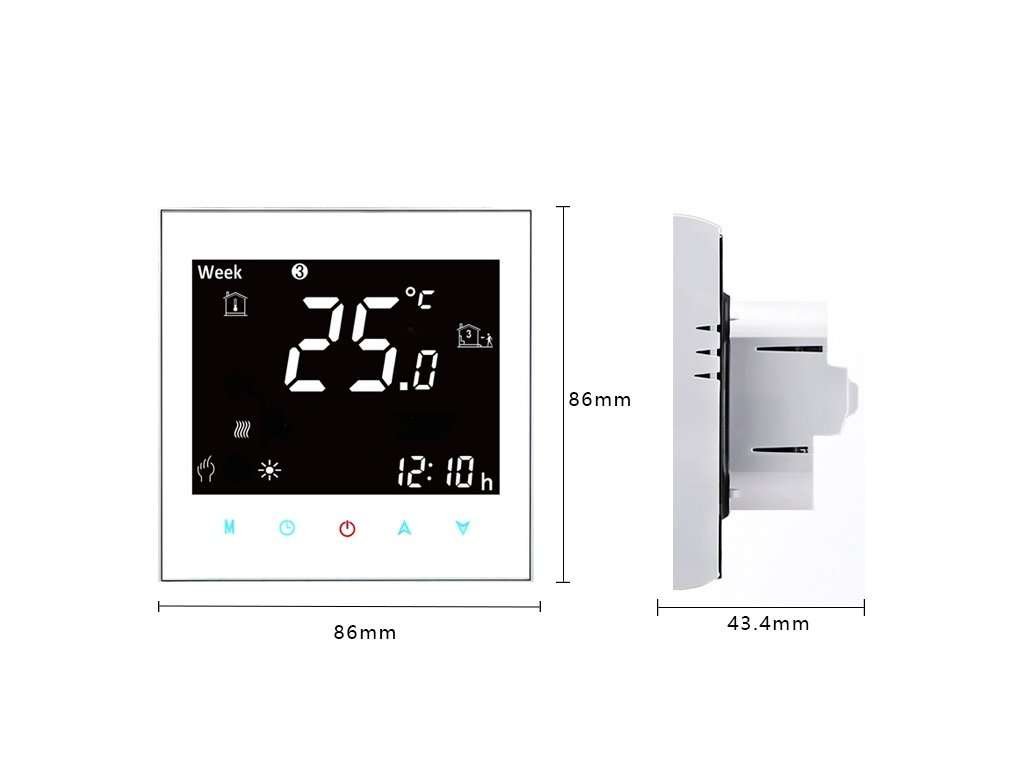Wifi Termostat W4 pre reguláciu všetkých druhov kúrenia. Termostat má luxusný a nevšedný čistý dizajn, má displej, ktorý vyzerá ako z nerez ocele. Zvyšuje teplotný komfort miestnosti a znižuje náklady na vykurovanie objektu. Termostat umožňuje vzdialené ovládanie cez internet mimo domova, stačí ho pripojiť k Vášmu Wifi routeru. Je určený na reguláciu plynových kotlov, elektrických kotlov, elektrického podlahového vykurovania, vodného podlahového vykurovania, ovládania tepelných čerpadiel a ďalších druhov kúrenia. Vďaka chytrej aplikácii Smart-Life si môžete nastaviť zapnutie kúrenia podľa polohy Vášho mobilného telefónu. Je možné tak zapnúť kúrenie, akonáhle sa priblížite domov.